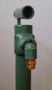 The outside protective tube of the hydrant is made of tough rigid, UV protected, 2” diameter PVC with 3/16” thick walls. It’ll hold up to just about any type of common use and abuse. BEWARE – Locating ANY hydrant inside a stock pen or where a vehicle can run over it is not good idea.
